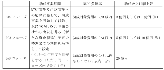 なお、各フェーズをまたいで実施する場合はDTSU事業、GX事業とも最長6年間、最大助成金交付額は30億円とする。